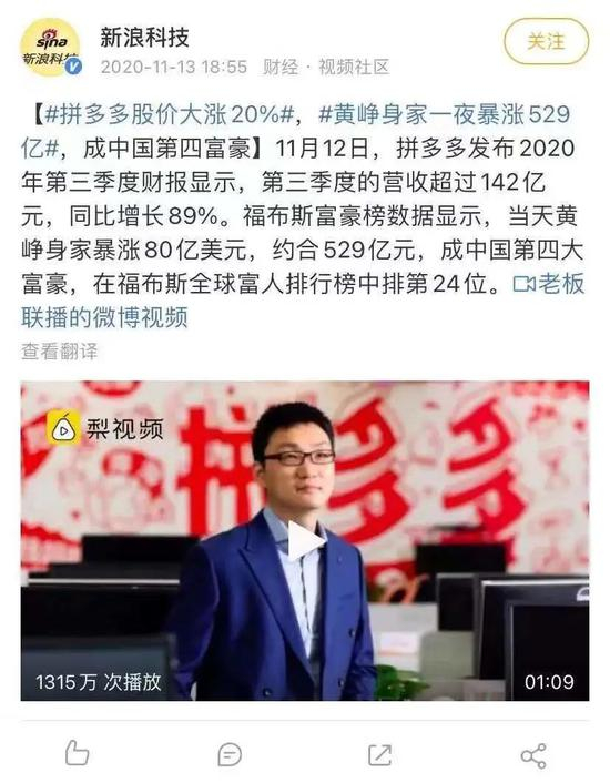 令人感到讽刺的是,妹子没跨过去的这个年,其就职的拼多多股价正强势上行,创始人身家暴涨。