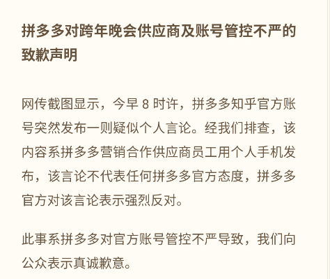 直到1月4日下午4点左右,也就是三分之一个拼多多日工时后,其官方才正式给出回应。