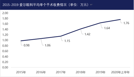 作为民营的眼科医院,爱尔眼科要保持收入与净利润的高速增长,势必需要增加患者就诊人数或者提高服务单价。爱尔眼科在这两个方面都做了努力,而在很长一段时间内,爱尔眼科收入的增长率都高于在爱尔眼科做眼科手术的患者人数的增长率。比如2015年,在爱尔眼科做眼科手术的病例数为32.32万例,较2014年增长了29.03%;同一报告期,爱尔眼科实现收入31.66亿元,较2014年增长了31.79%。此后的2016年-2019年爱尔眼科公布的实施手术数与公司当期营收的增长率之间均呈现这样的特点。尤其是2018年,这二者增长率之间的差距高达24.24个百分点。