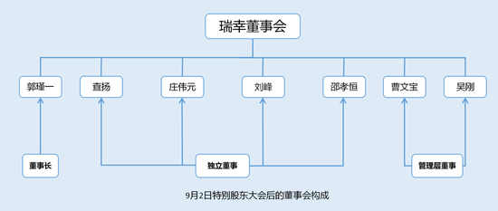 公告提到:该任命是根据2020年9月2日召开的特别股东大会的结果做出的决定。瑞幸咖啡董事会目前由四名独立董事包括查扬、庄伟元、刘峰和邵孝恒,以及三名管理层董事即曹文宝、郭谨一和吴刚组成。
