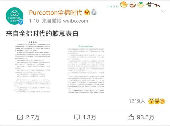 全棉时代正式发布致歉信