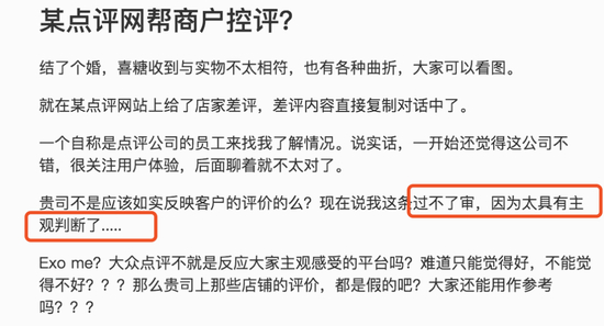 在大众点评打差评,要做好被删评的准备。/微博