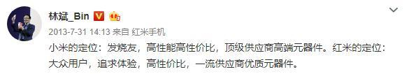 在红米成立一周年的当天,现任小米手机技术总监的林斌,对红米品牌做了一个战略定位。