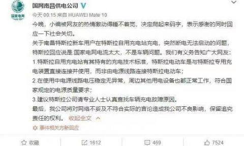 原标题:15楼财经 特斯拉突然断电怪国网?国网南昌公司回应:使用中电压稳定无异常
