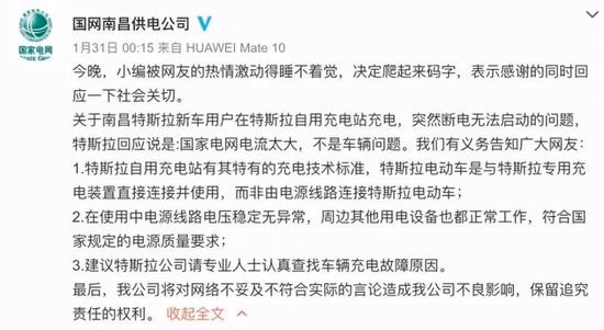 同时,国网方面还“友情建议”特斯拉“请专业人士认真查找车辆充电故障原因”,并表示,对网络不妥及不符合实际的言论造成公司不良影响,将保留追究责任的权利。