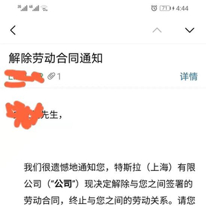 下午收到劳动解除合同,说我夸大其词,没关系劳动仲裁呗!凭良心我啥感觉都没有,因为在我和很多员工看来,在特斯拉上班就是耻辱,从上到下都是压榨欺骗剥削的德性,某经理你调查后依然歪曲事实,不肯承认特斯拉存在我文中所描述的行为现像,你小小年龄,路还很长,这么早就把自己定义为一个“不诚信的人”,我相信你的前途不会光明的,真的~~