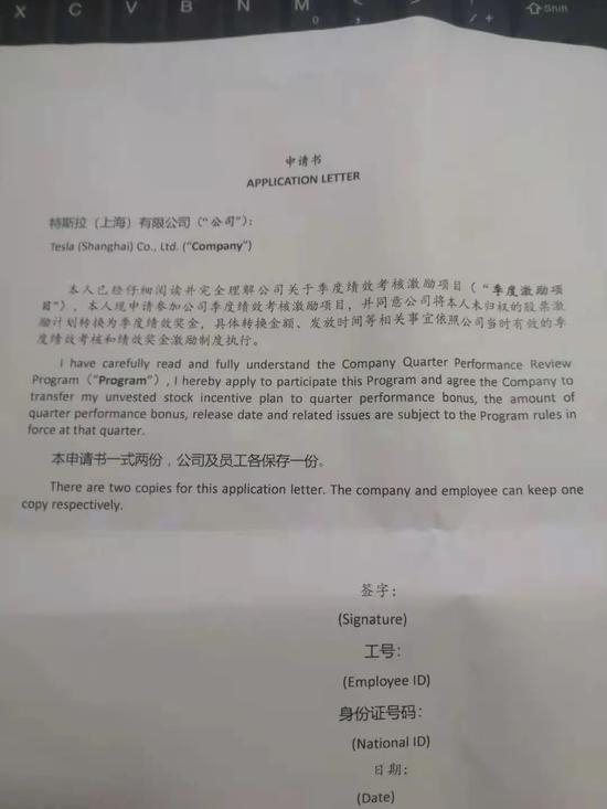 (图二),特斯拉耍了一个文字游戏,之前我们充分信任特斯拉,我个人毫无防备的在股票放弃申请书上签署了自己的姓名,然而今天我在副件上才仔细看到,股票转绩效,书面上没有注明十三薪年终奖这一说法,这也将会导致我们在后续进行维权过程中产生一定的难度,当然特斯拉这一波公然欺骗性手段做法,就显得格局太Low了,最终HR可以拿口说无凭这种理由来进行狡辩搪塞,然而!我也不是一个人在战斗,因为你们欺骗了成百上千名员工~