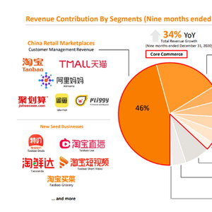 据财报,本季度淘宝APP首页引入了“订阅”和“逛逛”功能,进一步增强了用户和品牌、商家、网络红人(KOLs)、视频博主和内容创作者的互动。淘宝直播成为了品牌、商家和 KOLs 与消费者直接互动的重要营销及分发工具,截至2020年12月31日止12个月,淘宝直播带来的GMV超过4000亿元,稳坐直播电商头名。
