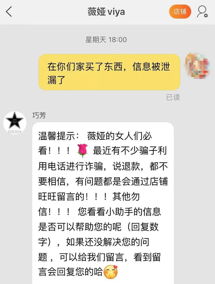 消费者因此怀疑自己的个人信息遭到泄露。而梦妆方面则表示,确保消费者的信息保密是品牌不变的承诺,并称自己拥有严谨和安全的消费者信息管理制度,目前已针对此事请求天猫平台协助排查信息泄露源。薇娅方面则称“最近有不少骗子利用电话进行诈骗,说退款,都不要相信。”