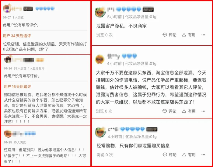 有消费者抱怨称自己每天都能收到诈骗电话;也有消费者直指若商家真的泄露了个人信息,就是犯罪行为;更多的消费者则表示希望商家能够对这一事件进行调查,并向所有有类似遭遇的买家一个交代。