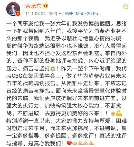 2020年11月17日,华为官方正式对外宣布了出售华为荣耀品牌的声明,成了不得已而为之的选择。