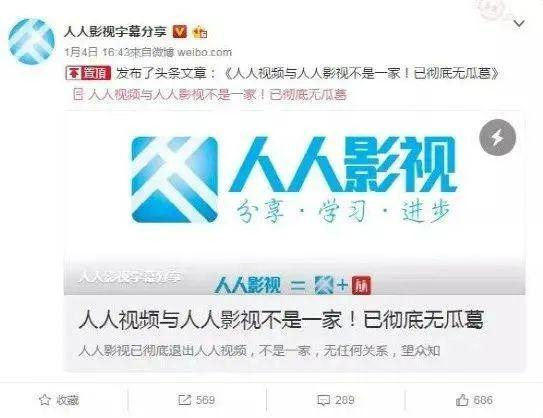 时至今日,许多人都傻傻分不清楚人人影视和人人视频。其实早在2017年初,人人影视字幕组就曾在其官方微博发布《人人视频与人人影视不是一家,已彻底无瓜葛》一文,澄清与人人视频的关系。文章提到,人人影视已经退出“人人视频”项目,彻底无任何瓜葛,不是一家,两者没有任何关系。