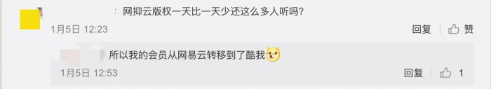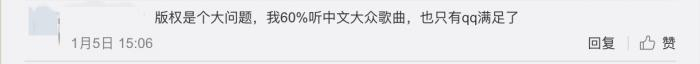 同样的问题网易云也存在。有网友表示网易云版权一天比一天少。