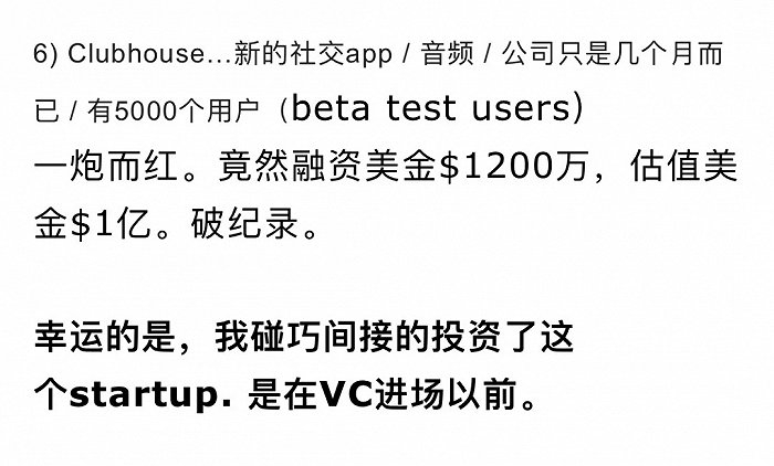 该投资人在2020年7月时,就在公开平台晒出自己投资Clubhouse天使轮的收益,“赚翻了,要去北京雍和宫烧香。”