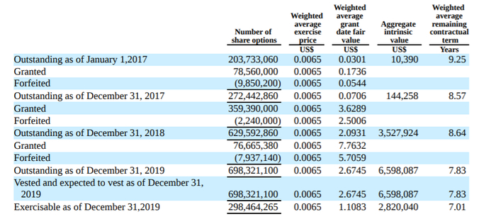 数量较少的2018年,有两百万多股期权被收回,目前市场价值40亿美元。