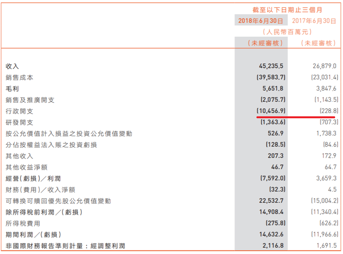 2018年第二季度,小米出现经营亏损75.92亿元,同样是因为股权激励——小米在上市之前向雷军支付了高达约99亿元人民币的股权激励,导致当期行政支出高达104.57亿元。