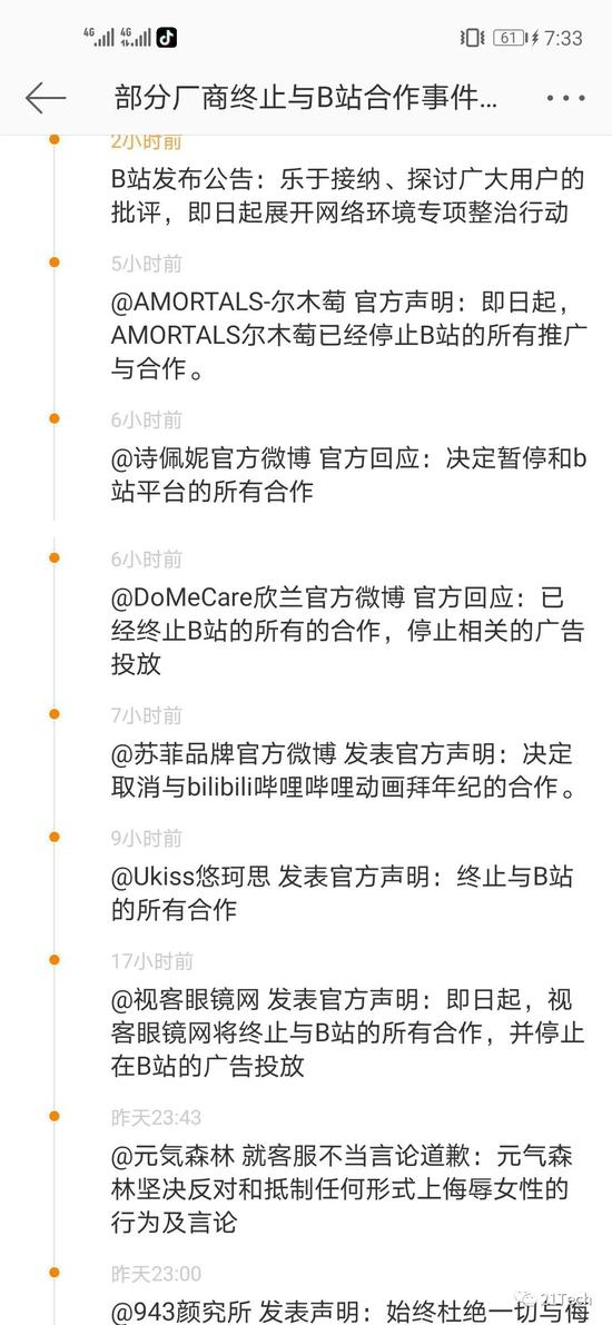 但此举并未平息风波,有不少网友向B站合作品牌反映该情况,抵制品牌在B站推广。