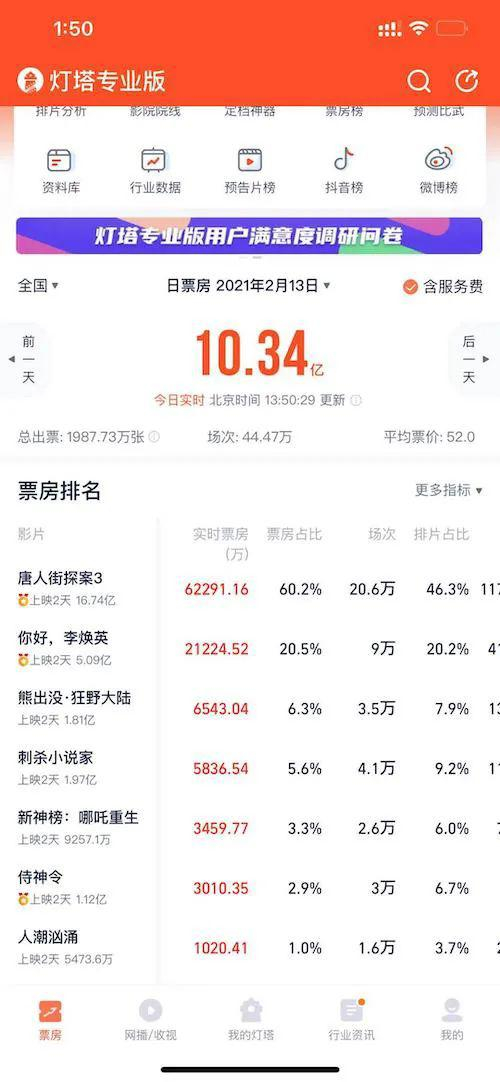观众的热情也让牛年首日票房达到了17.36亿元,总出票量3456.78万张。