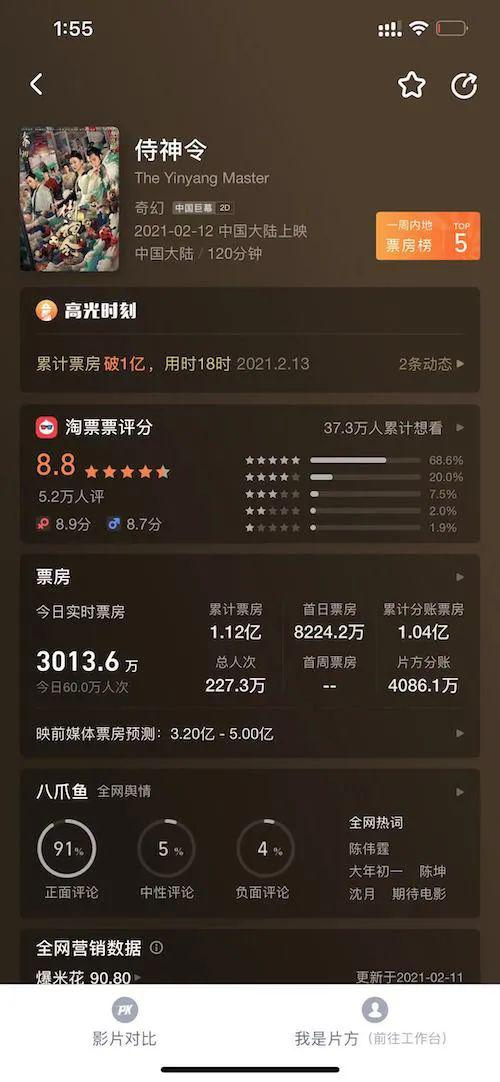 然而首日8224.2万元的票房,并不能让网易满意,媒体预期其票房也仅为3.2-5亿元。
