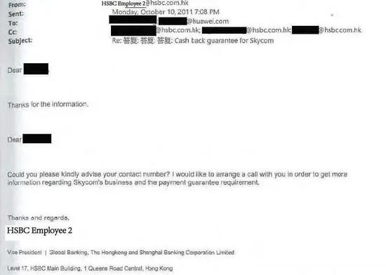 据了解,多年以来,汇丰处理Skycom的业务都是与华为员工用华为邮箱进行沟通和联络。汇丰内部,Skycom也被标志隶属于华为集团(Huawei Group)。