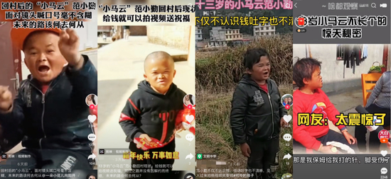 其实明眼人都看得出来,小马云身上的“调教感”很重,一言一行甚至有点油腻。小小年纪他已经清楚知道,只要他按照要求做这些,别人就会给他红包,保姆就会带他下馆子,以至于只要一面对镜头,他就会自然而言地做出这些动作。