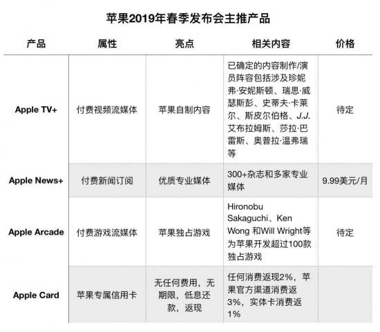 于是就有了2015年Apple Music首次亮相;2019年一股脑推出Apple News+,Apple Arcade,Apple Card和Apple TV+,对应着卖卡、卖片、卖新闻、卖游戏。苹果企图通过提供创新型服务,改变新闻、金融、游戏、影视娱乐这四大行业过往的服务模式。