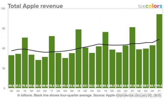 1月底,苹果发布2021第一季度财报,史上首度单季度营收破千亿,同比上涨21%至1114.4亿美元。过去一年,疫情对于很多硬件公司来说都是灾难,但到了苹果这里却成了实打实的雪中送炭。