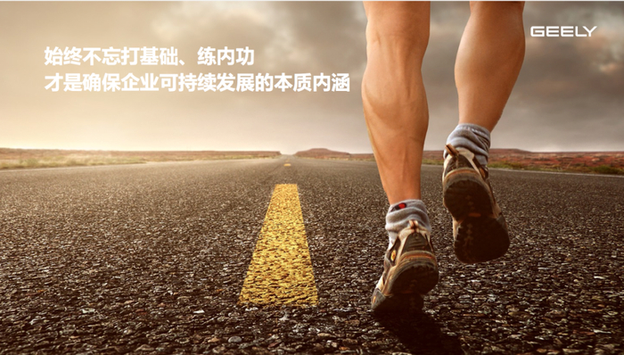 对吉利而言,千万不能犯这种错误,因为我们曾经有过马拉松经历,我们深深懂得打基础练内功的重要性。我们的每一步路都不能走错,我们的步伐必须坚定而稳健,我们必须非常清楚,企业比拼的不是图一时快乐,而是可持续发展能力。