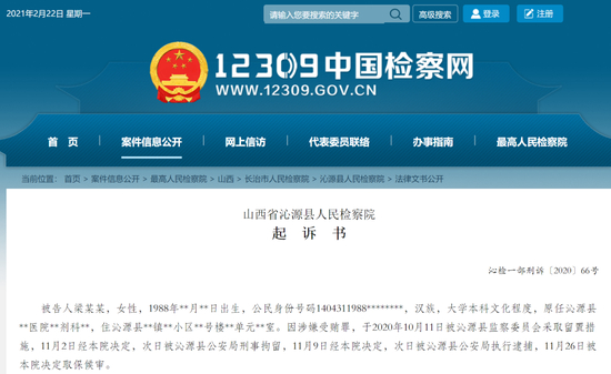 根据长治市纪委监委网站披露的消息,梁晓1988年出生,被起诉的时候,还不到32岁。从纪委公布的梁晓履历来看,当上县医院药剂科副主任之后,梁晓就开始了受贿。