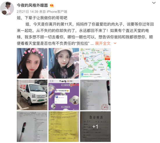 弟弟是第一个站出来希望为姐姐“讨公道”的家庭成员。他在微博上讲述姐姐充盈的生活,对“自杀”一说无比质疑。