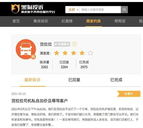 记者在消费者服务平台“黑猫投诉”搜索发现,涉及货拉拉相关投诉已超3000条, 包括司机加价、货物损坏、押金等款项难退等问题。