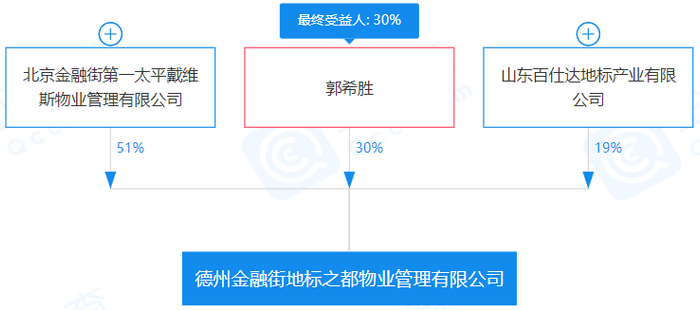 地标之都物业成立于2月2日,注册资本100万元,共同出资的三位股东是金融街第一太平、郭希胜和山东百仕达地标产业有限公司(简称“百仕达”),分别持股51%、30%和19%。