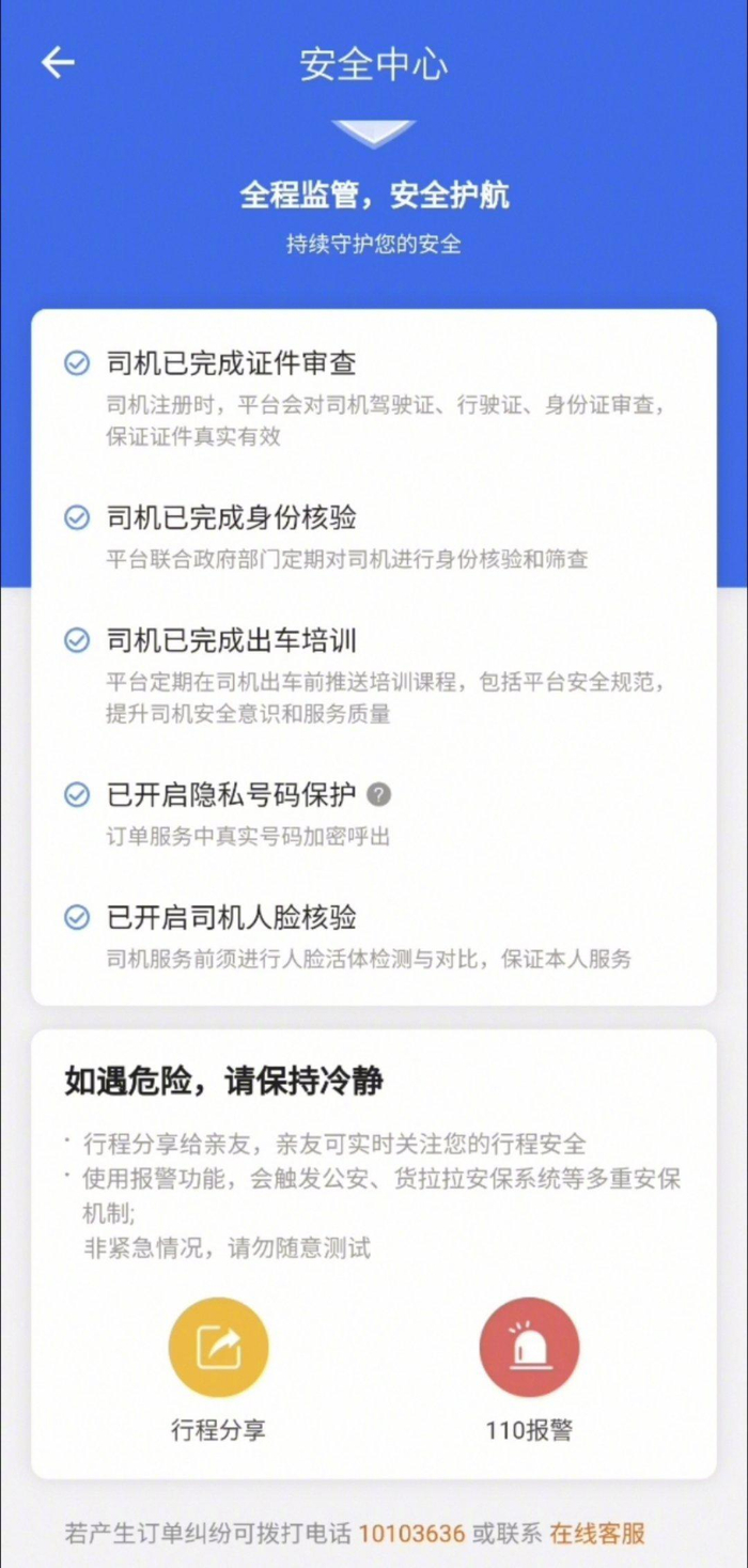 23日,新京报记者在河南郑州两次探访货拉拉行车过程发现,下单后出现的地图页面上,有一个安全中心的标识,点击该标识,可以进入另一个页面,该页面上显示有“行程分享”和“110报警”的功能。点击分享可以生成链接发送给好友,好友可通过点击链接实时查看车辆位置、司机和车辆信息,还可以拨打司机电话。但在车上,新京报记者没有看到摄像头等设备。