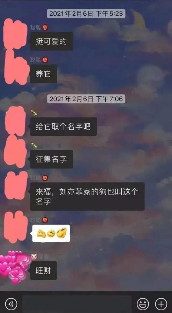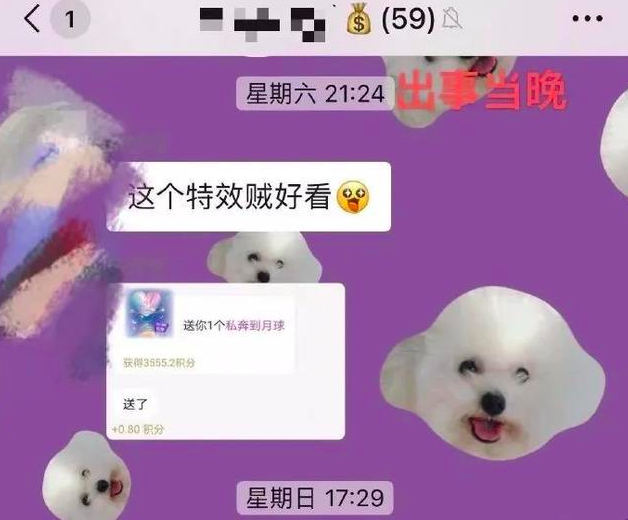 微信聊天记录显示,当天晚上7点,莎莎还在与好友讨论着给一只柯基犬取名,莎莎开玩笑地回复了“旺财”。她的微信头像是一个戴着红色蝴蝶结的小公主,朋友圈背景是带着星星的粉色图片,签名上写着“知足且上进,温柔且坚定”。