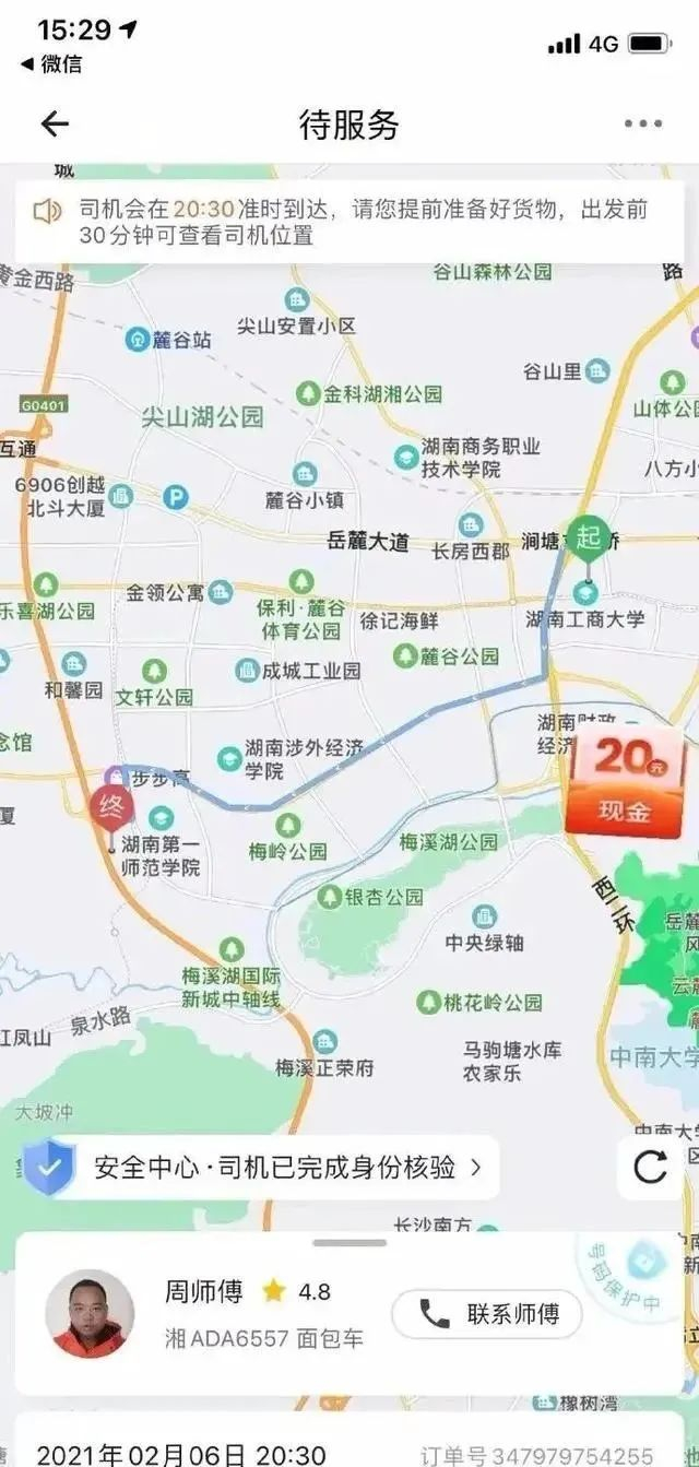 莎莎的叔叔车细强就在长沙工作,他告诉本刊,2月6日晚9点45分左右,自己收到莎莎跳车的通知后,马上赶到了医院。车细强事先知道莎莎要搬到距离大约10公里外的梅溪湖步步高公寓,还帮着侄女打扫了房子。搬家当天,莎莎曾给家人发来货拉拉上的手机订单截图,图片显示接单的司机是周师傅,会在8点30分达到莎莎的公寓,“司机已完成身份核验”。