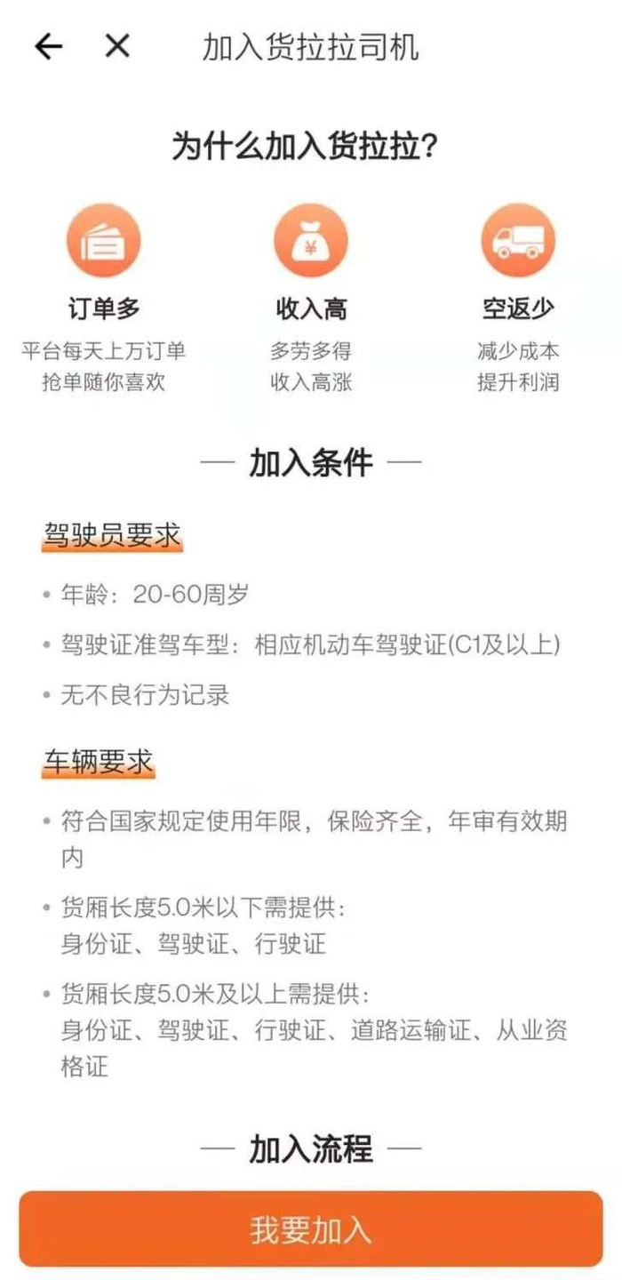 司机是货运平台的核心,司机普遍为男性,为了加快地推效率,货拉拉地推的工作人员基本都是女性。同时,司机的审核机制从一开始就不够严格,培训形同虚设,对于司机个人的审核几乎为0。下了软件,学会了接单,司机就能接活了。