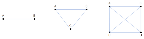 3个人呢?两两沟通,A-B,B-C,C-A。3条。