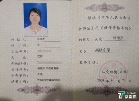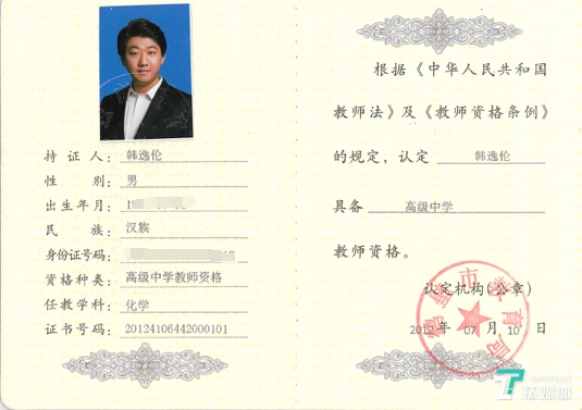 采访中,高途课堂方面还向记者展示了几位老师的教师资格证原件,例如陈国栋、韩逸伦、褚帅(褚连一)、潘腾等。(以下为部分高途课堂老师的教师资格证照片)。