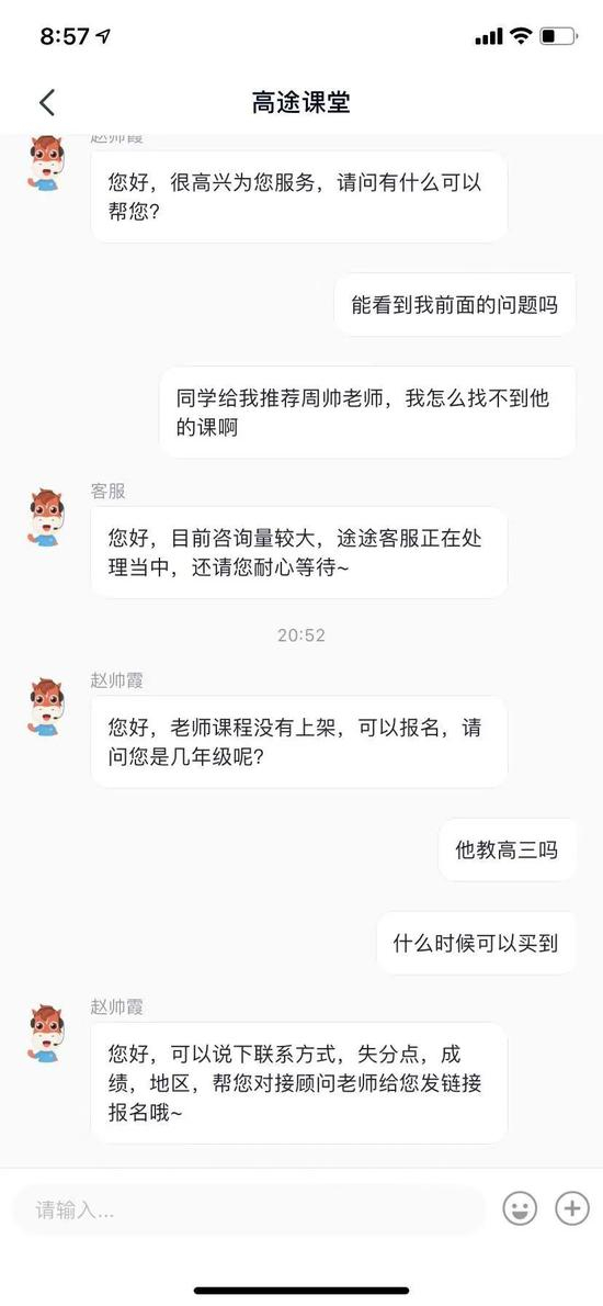 智商税研究中心向高途课堂APP的客服进行了咨询求证,客服说目前周帅老师主教高二,搜索不到其课程是因为公司老师太多,目前在官网没有全部展示。