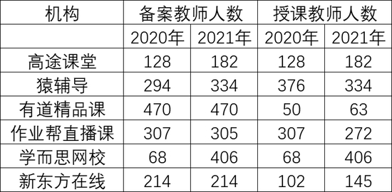 在2019年的年度报告中,高途课堂说他们有232名持证的教师,并在官网上列出了217名教师,但教育部要求公示师资信息时,高途课堂公布全部的教师数量仅为128名。