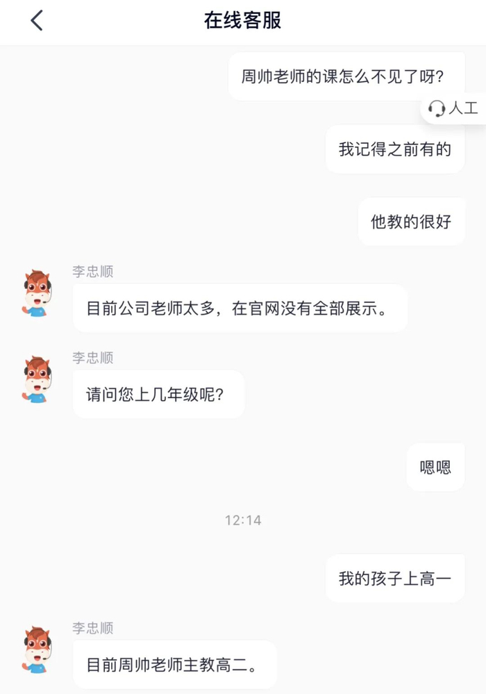 顾问老师还表示,虽然周帅老师的课下架了,但是之前报过周帅老师课程的学生,还会由周帅老师带着,一直带到高三毕业。而且这也是周帅老师最后带的一批学生,之后他就要转为管理层,不再授课。