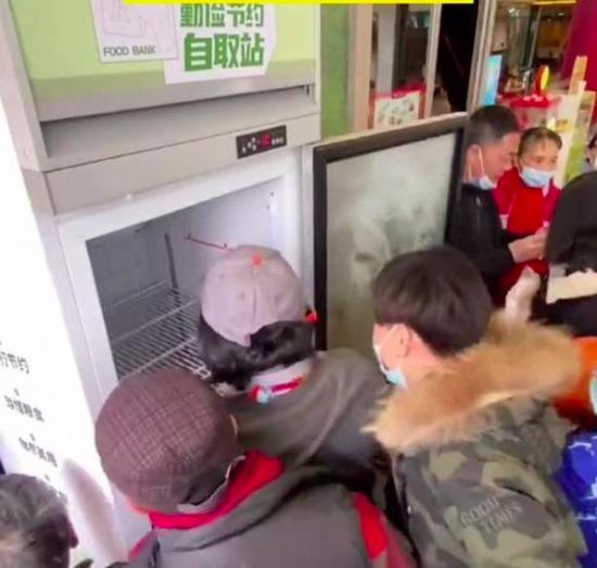 据一段被多次分享的视频,在一个“食物冷柜”前,有多名中老年市民挤在冷柜前。在冷柜门打开后多名老人开始哄抢食物,一名身穿灰色衣服的工作人员试图用身体挡住冷柜门,但是无济于事。大约12秒后,冷柜内的食物被哄抢一空,一位老人拿走冷柜内最后一个鸡肉卷,围观和哄抢的人群才逐渐散去。