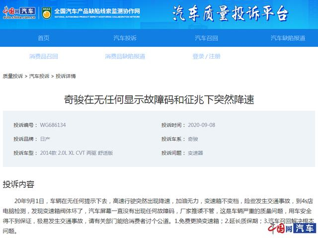 原标题:东风日产奇骏变速器故障频发得不到解决 车主称谁买谁后悔