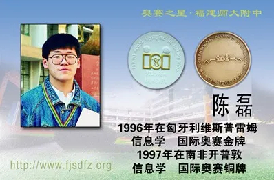 他与另外三名学生组成中国代表队赴匈牙利参加国际信息学奥赛,大获全胜。四人将金牌悉数摘走,创造了1989年开赛以来中国代表队首次取得全“金”成绩的历史。时至今日,陈磊高中学校的求索碑上仍镌刻着他和指导老师的名字。