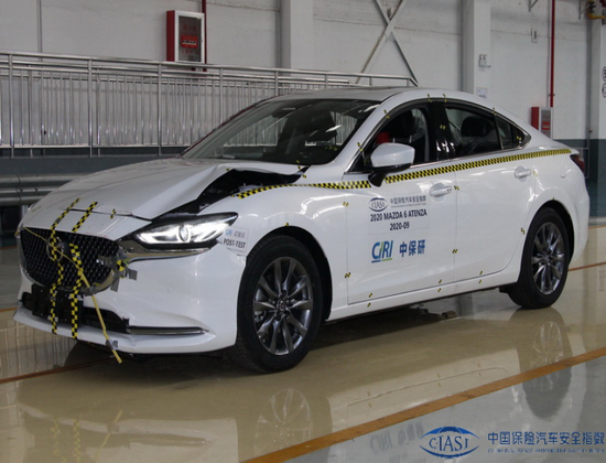 2020年12月,中保研公布了最新一期碰撞测试成绩。在5款测试车型中,只有阿特兹在正面25%偏置碰撞项目中取得M(一般)的成绩,A柱出现明显弯折,导致内部空间被挤压,车内乘员安全指数只能获得A的成绩。