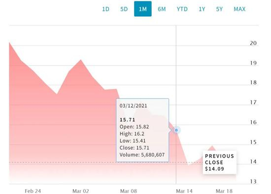 逸仙电商一个月内股价趋势来源/纳斯达克官网
