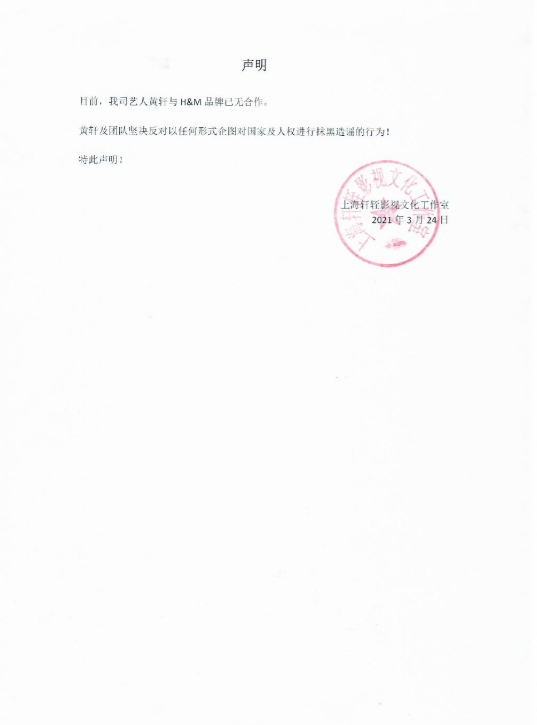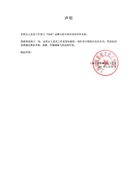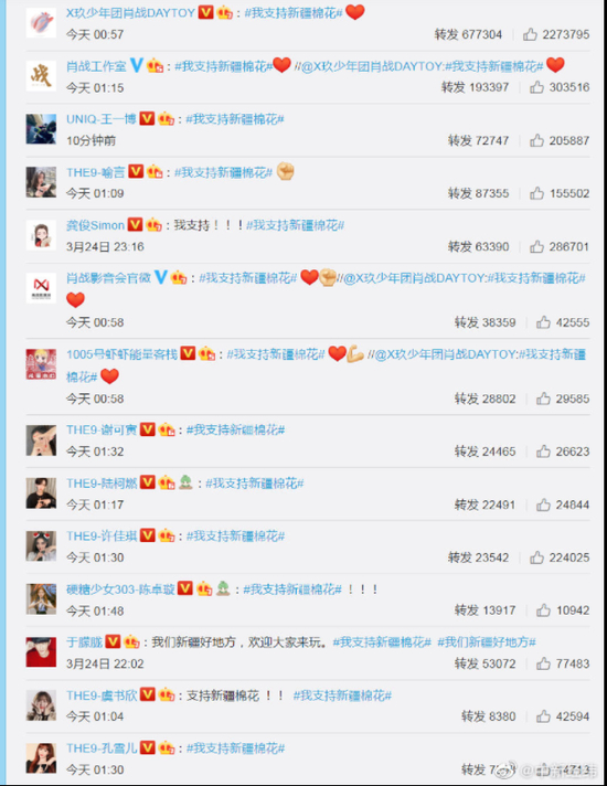 肖战王一博等艺人发声支持新疆棉花 黄轩宋茜等与H&M终止合作