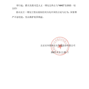【#多名艺人发声支持新疆棉花# #多名艺人与抵制新疆棉花企业终止合作#话筒】除了H&M以外,#阿迪耐克曾发表与新疆棉花切割言论#。25日上午,乐华娱乐发表最新声明称,王一博终止与“NIKE”品牌的一切合作。中新经纬梳理发现,艺人黄轩、宋茜、辣目洋子等此前表示与H&M解除合作。此外,还有肖战、王一博、佟丽娅、龚俊、虞书欣、于朦胧、杨超越、白鹿、罗云熙等多名艺人发声支持新疆棉花。