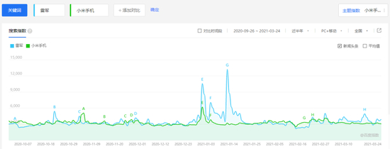 显然,外界也一直倾向于将雷军与小米划等号。百度搜索指数的“雷军”和“小米手机”相关指数显示,雷军与小米手机的曲线除个别时间外,高度重合。这意味着,网友在对小米手机或雷军进行搜索时,必然会带上对方,二者在用户心智中已然是“捆绑”状态。