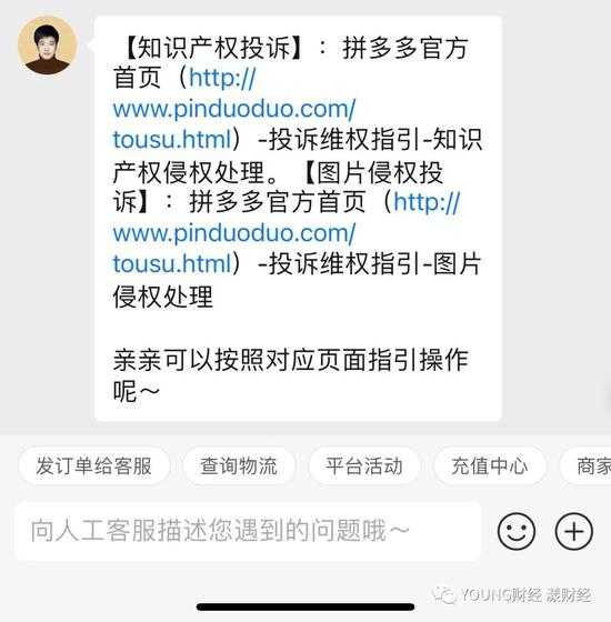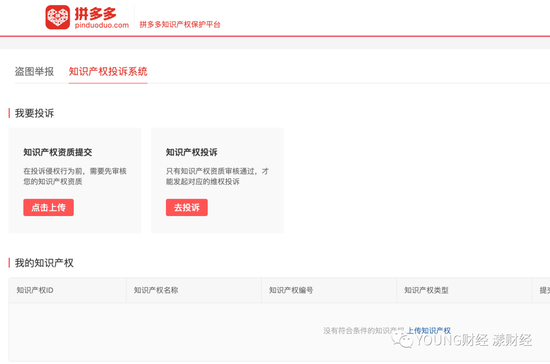 YOUNG财经在拼多多APP中举报失败后,按官方客服推送给我们的“知识产权投诉”链接进行举报(这条链接在拼多多的APP中根本找不到它的入口),操作到最后发现,这个渠道对C端购买用户无效,因为它只面向著作权人、出版社开放。